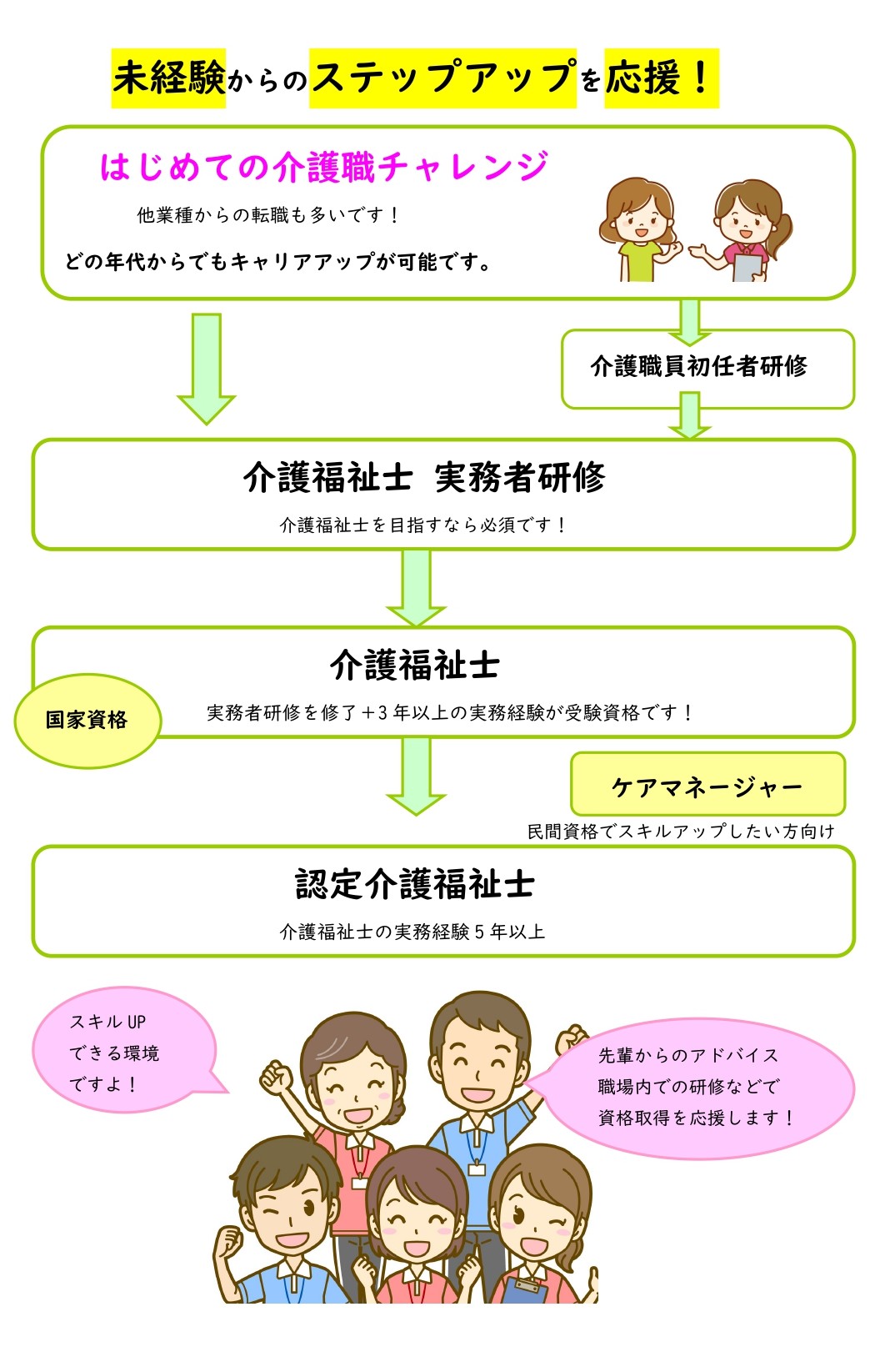 さらに、無資格で入職された方には、キャリアアップを支援する資格取得補助制度を設けています。訪問介護職には、業務効率と移動の負担を減らすため、社用車の提供、自家用車を使用するスタッフにはガソリン代を含めた移動手当を支給しています。これらの制度は、「職員を大切にする」という当園の姿勢を具体的に示すものであり、長く安心して働ける環境を約束します。
