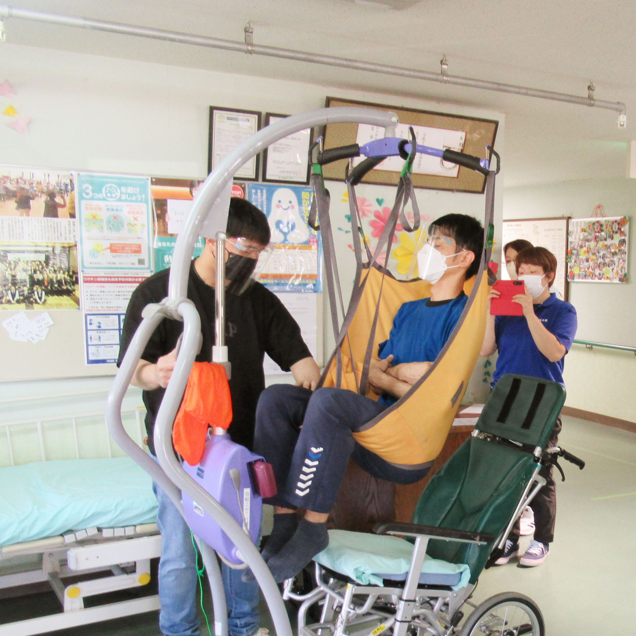 新施設への移行時には、利用者様の移乗や体位変換の負担を大きく軽減する「全室リフトの設置」を導入。さらに、夜間や日中の安全性を高める夜間センサーや、さまざまな場面で活躍する移乗補助器具の活用を推進しています。これらの設備投資は、職員の腰痛予防や負担軽減に直結し、長く健康的に働ける環境を整備することにより介護レベルの向上を目指しています。